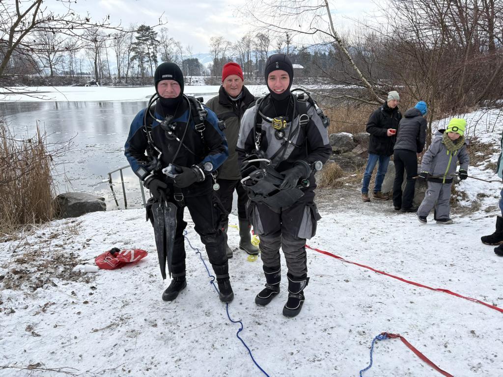 Der Alte Rhein war dieses Jahr, wie schon lange nicht mehr, von Eis bedeckt, sodass sich unsere Taucher auf einen Tauchgang unter der Eisdecke freuen durften.