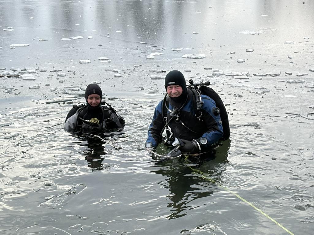 Unter tatkräftiger Hilfe von Helmut Rinne konnten sich zwei unserer Teilnehmer von der schönen Unterwasserwelt bei eisigen Temperaturen überzeugen.