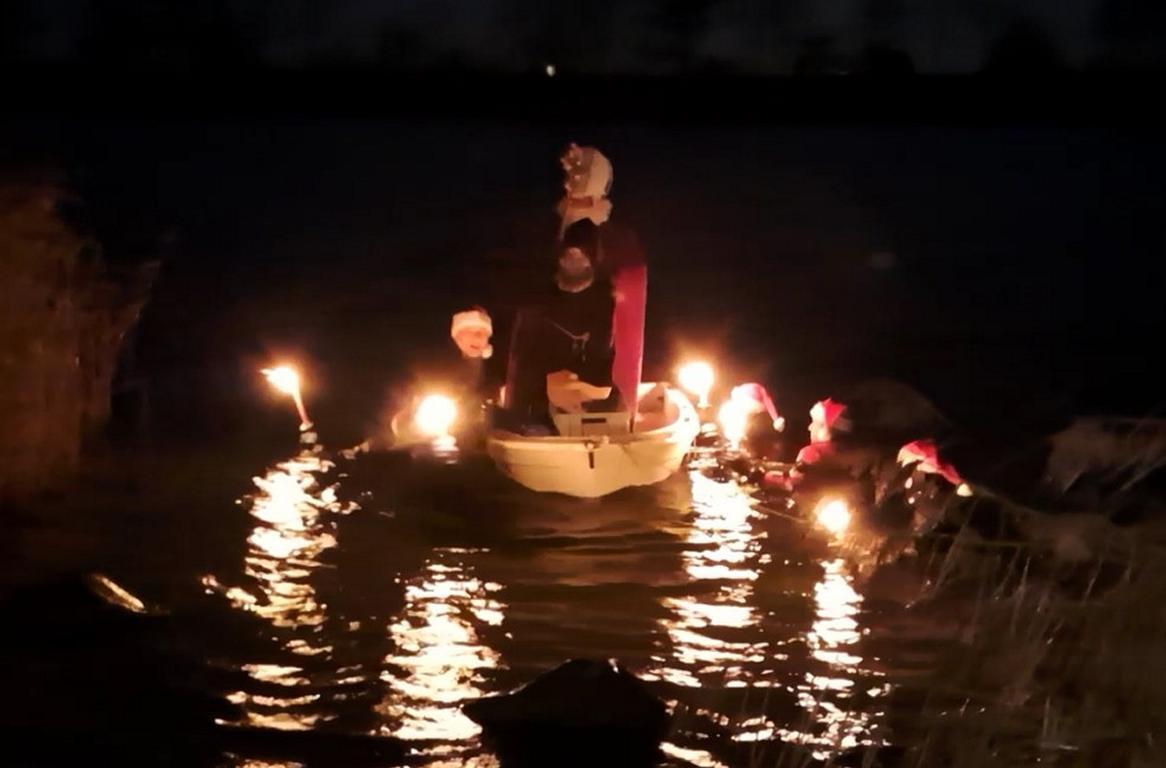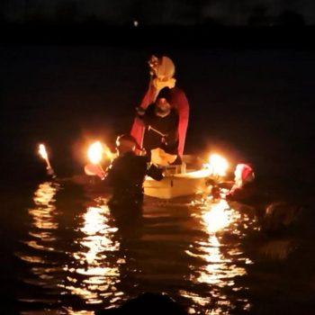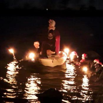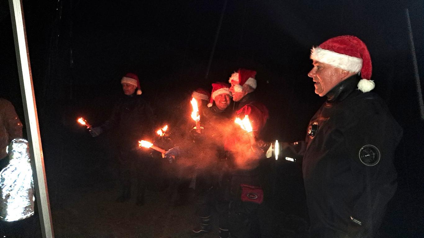 Trotz windigem und regnerischem Wetter fanden sich zahlreiche Mitglieder und Freunde des Tauchclub Vorarlberg zur diesjährigen Nikolausfeier ein. Inmitten einer besonderen Atmosphäre trafen Nikolaus und Knecht Ruprecht auf einem stimmungsvollen Weg über den Alten Rhein ein – begleitet von mutigen Fackelschwimmern, die dem winterlichen Abend einen eindrucksvollen Glanz verliehen.