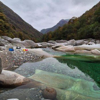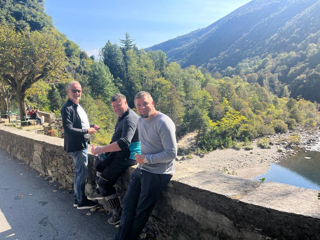 Am Samstag kam noch eine Gruppe von weiteren Tauchern dazu, sodass wir mit einer größeren Runde unterwegs waren. Ein Teil der Gruppe erkundete den Tauchplatz Santa Anna, bevor sich alle im Maggia Tal bei Ponte Brolla wieder trafen. Von dort ging es gemeinsam weiter ins beeindruckende Verzasca Tal nach Sonogno, wo neben der Natur auch das Vereinsleben im Vordergrund stand.